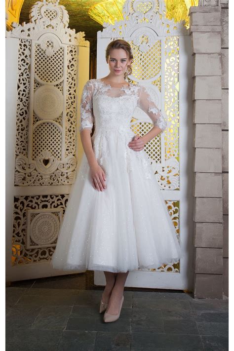 For those who prefer a more relaxed vibe, a bohemian-inspired dress may fit the bill. With its flowing fabric, lace details, and effortless style, this option is perfect for outdoor or beach weddings. Alternatively, if you're a lover of all things vintage, a tea-length dress may be just what you're looking for. This retro style features a hemline that falls between the knee and ankle and is often paired with delicate lace and feminine details.